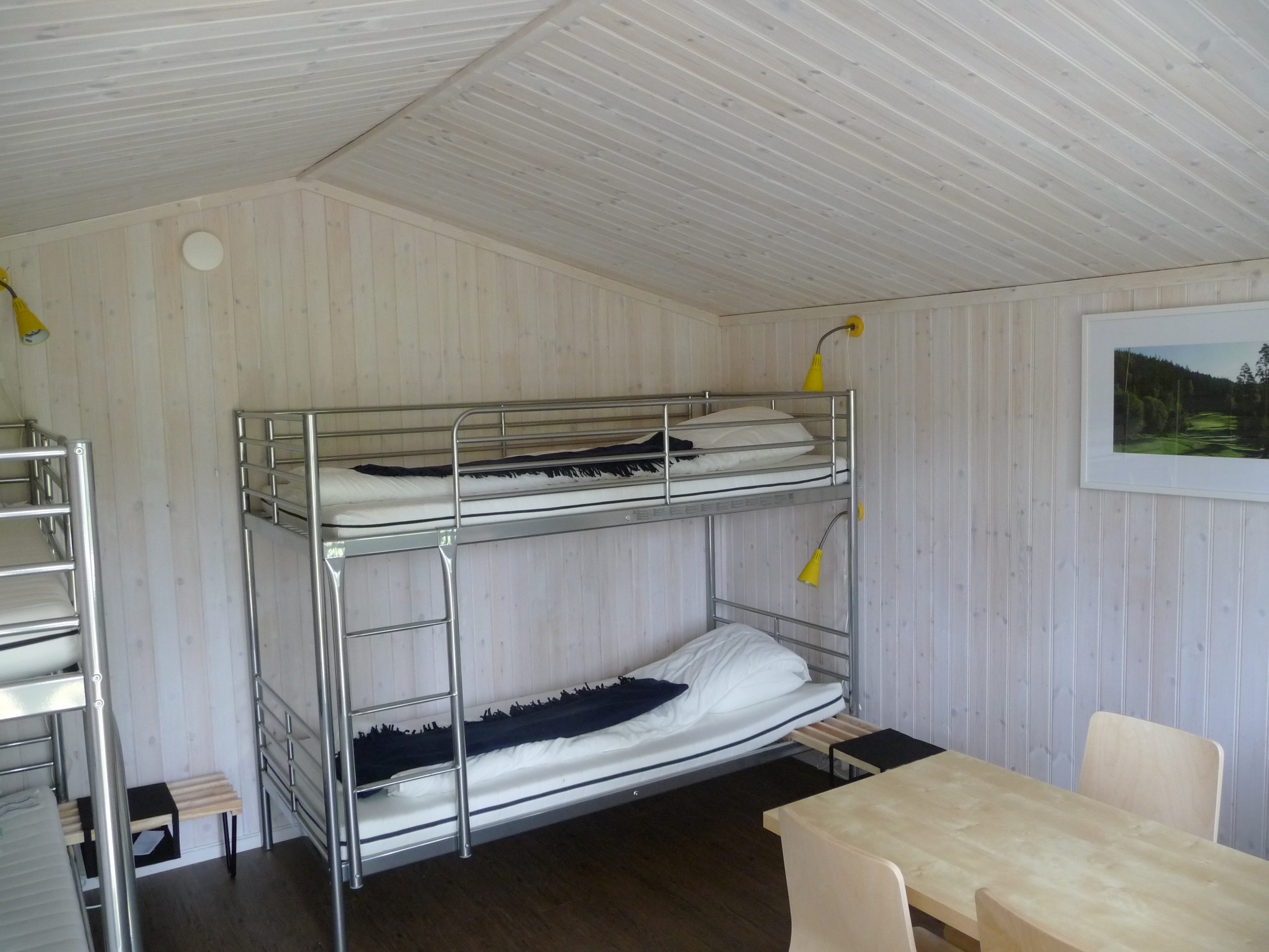 Vi erbjuder 4 stugor med två våningssängar i varje, totalt 16 totalt bäddar. Här bor du verkligen mitt på anläggningen, endast en långputt från puttinggreen & range samt en pitch till vårt fina klubbhus, med tillgång till faciliteter som omklädningsrum, dusch, bastu & restaurang.