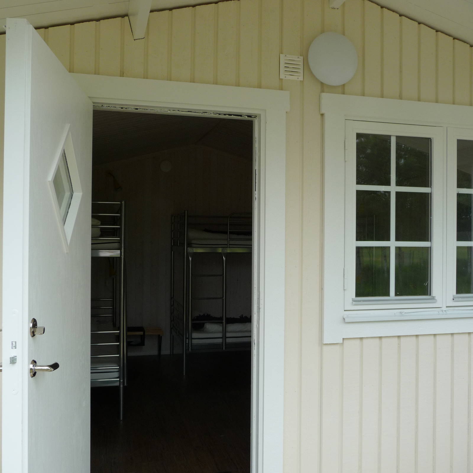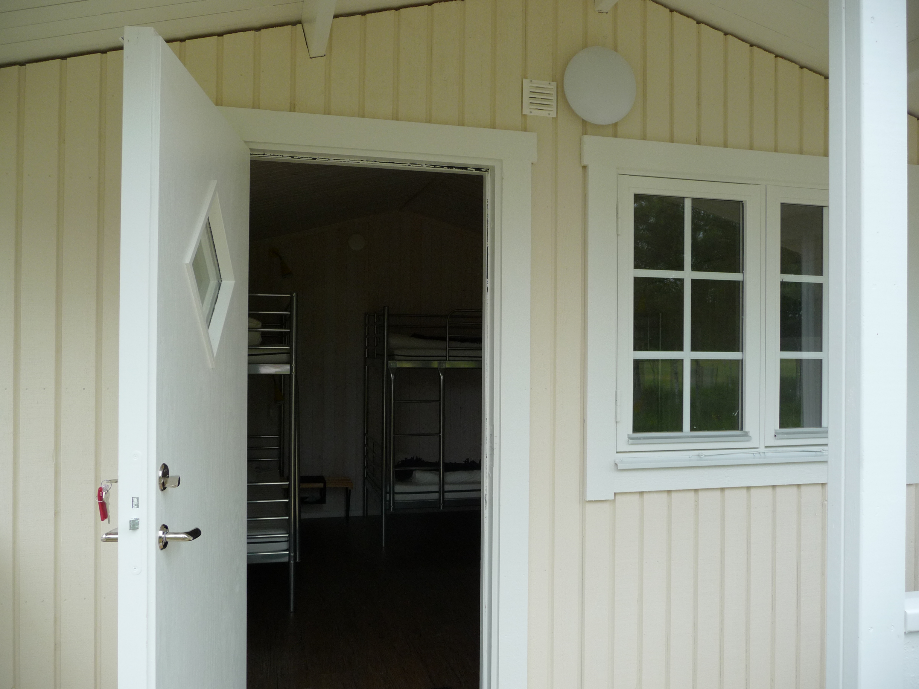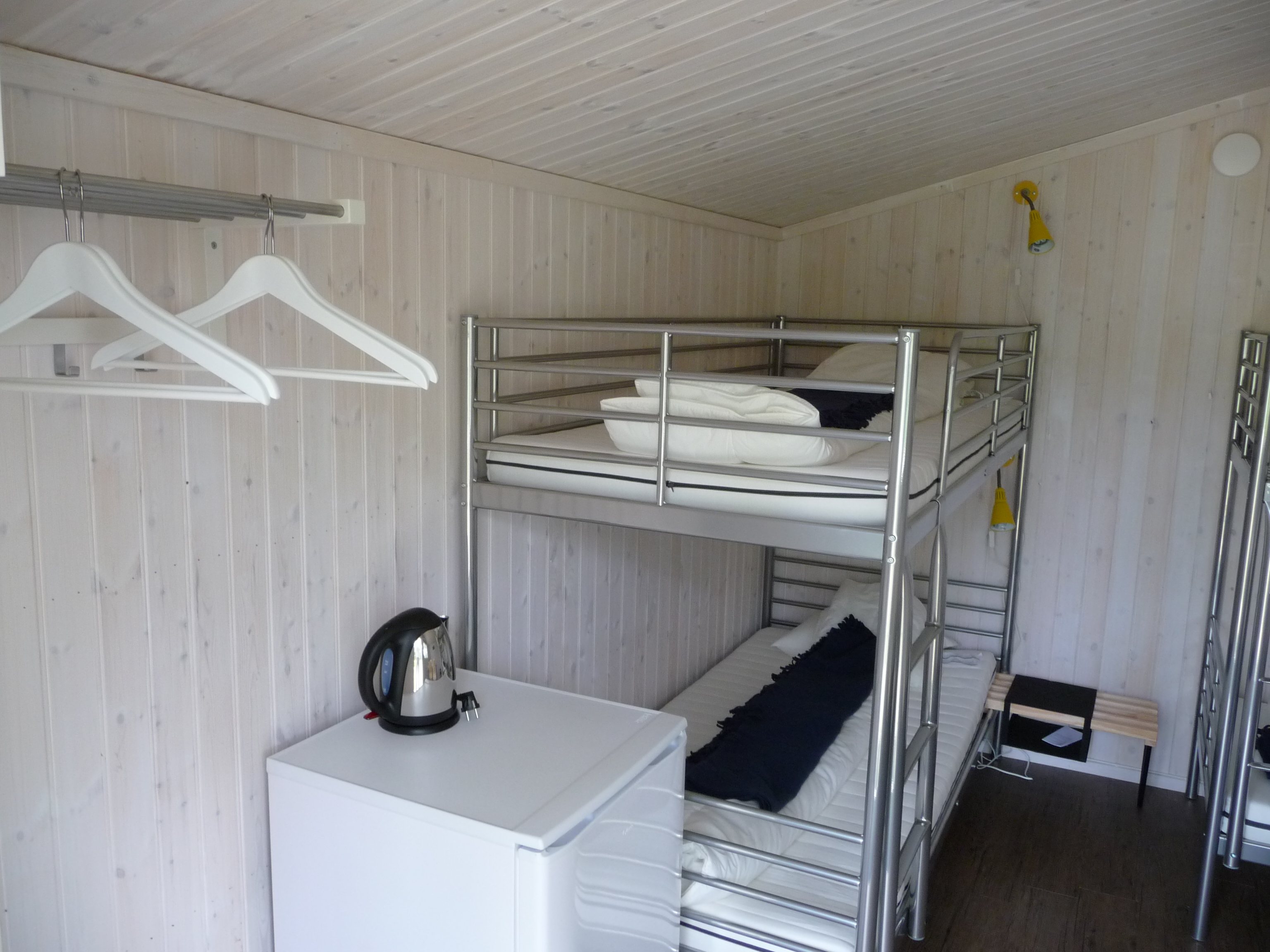 I varje stuga finns två våningssängar, bord med stolar, kylskåp, vattenkokare & dunk att hämta vatten i.