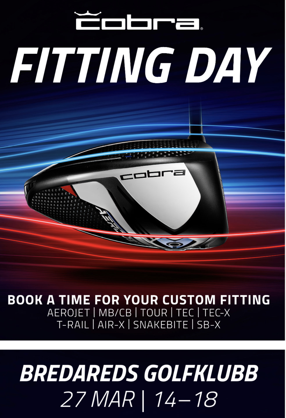Cobra har en fantastisk familj med Aerojet drivers, grymma järnklubbor för den bättre spelaren i KING-serien, förlåtande klubbor i AIR-X och nya T-Rail, helt nya Snakebite wedgar och våra revolutionerande putters lever kvar.