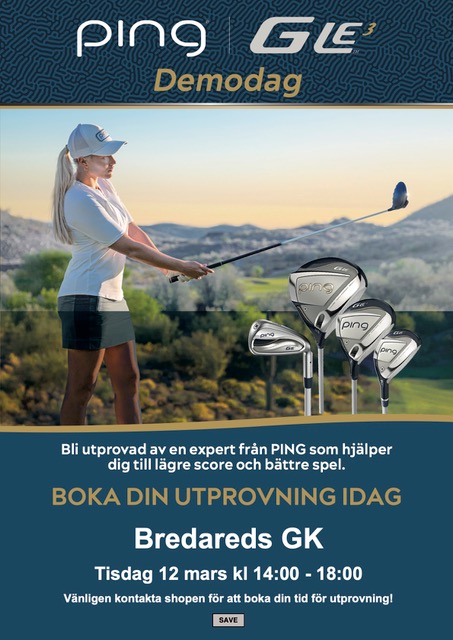 Nu är det dags för årets första demodag då Ping kommer på besök 12/3 kl. 14:00-18:00. Kontakta shopen för att boka din tid för en professionell utprovning av Ping´s fantastiska produkter.