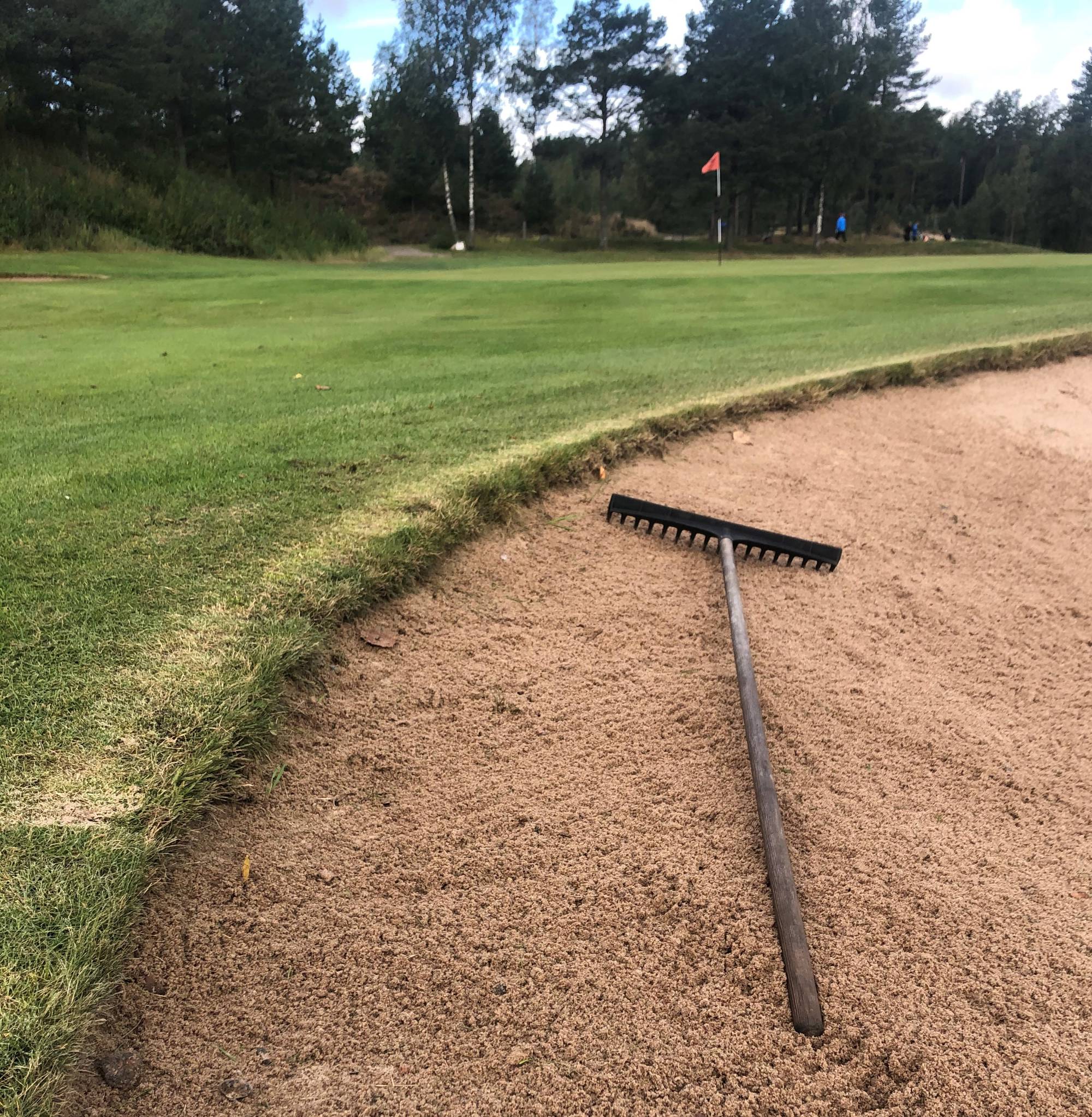 Vi lägger ut våra krattor i bunkrarna igen. I samband med detta vill vi dock påpeka att det INTE är ett krav att använda dessa om ens boll hamnar i bunkern, då vi fortfarande befinner oss i en pandemi.