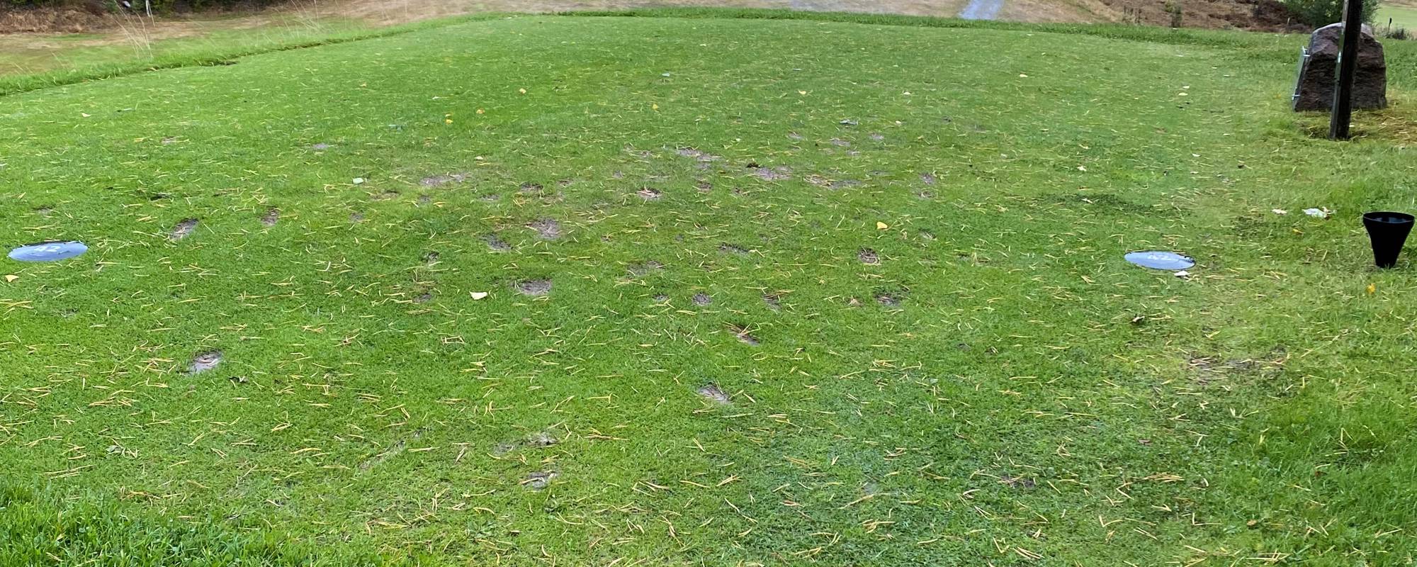 Det går till på så sätt att vi torvar av gräset med vår torvskärare, jämnar till tee-ytan och lägger sedan tillbaka gräset. De tee´s som renoveras kommer att spelas från matta eller annan gräsyta säsongen ut.