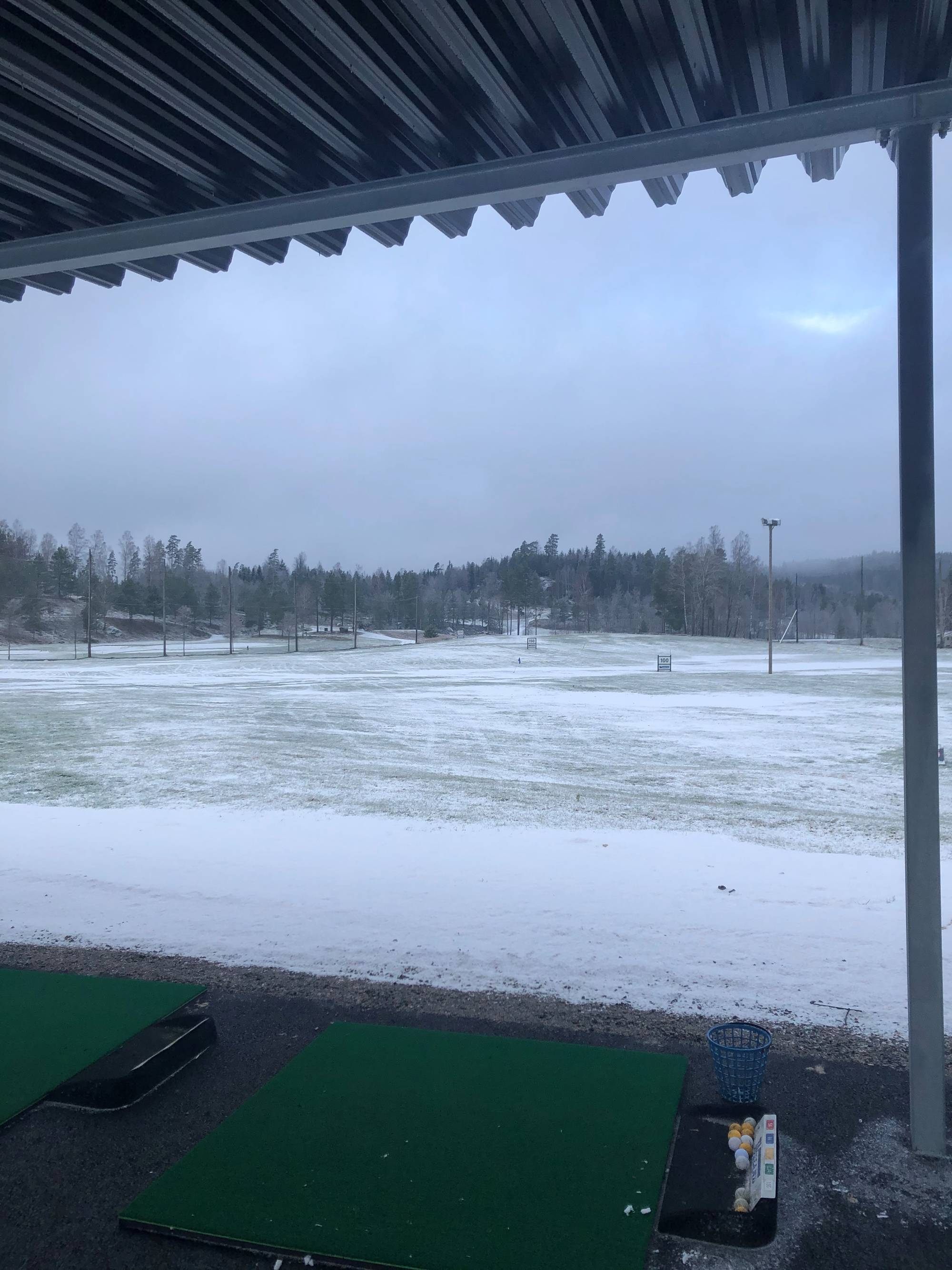 Ett litet lätt snöfall har kommit idag. Men är du sugen på att slå på Rangen är det ingen fara. Det finns bollar i automaten och vi har vårt nya tak över hälften av utslagsmattorna. Välkomna!